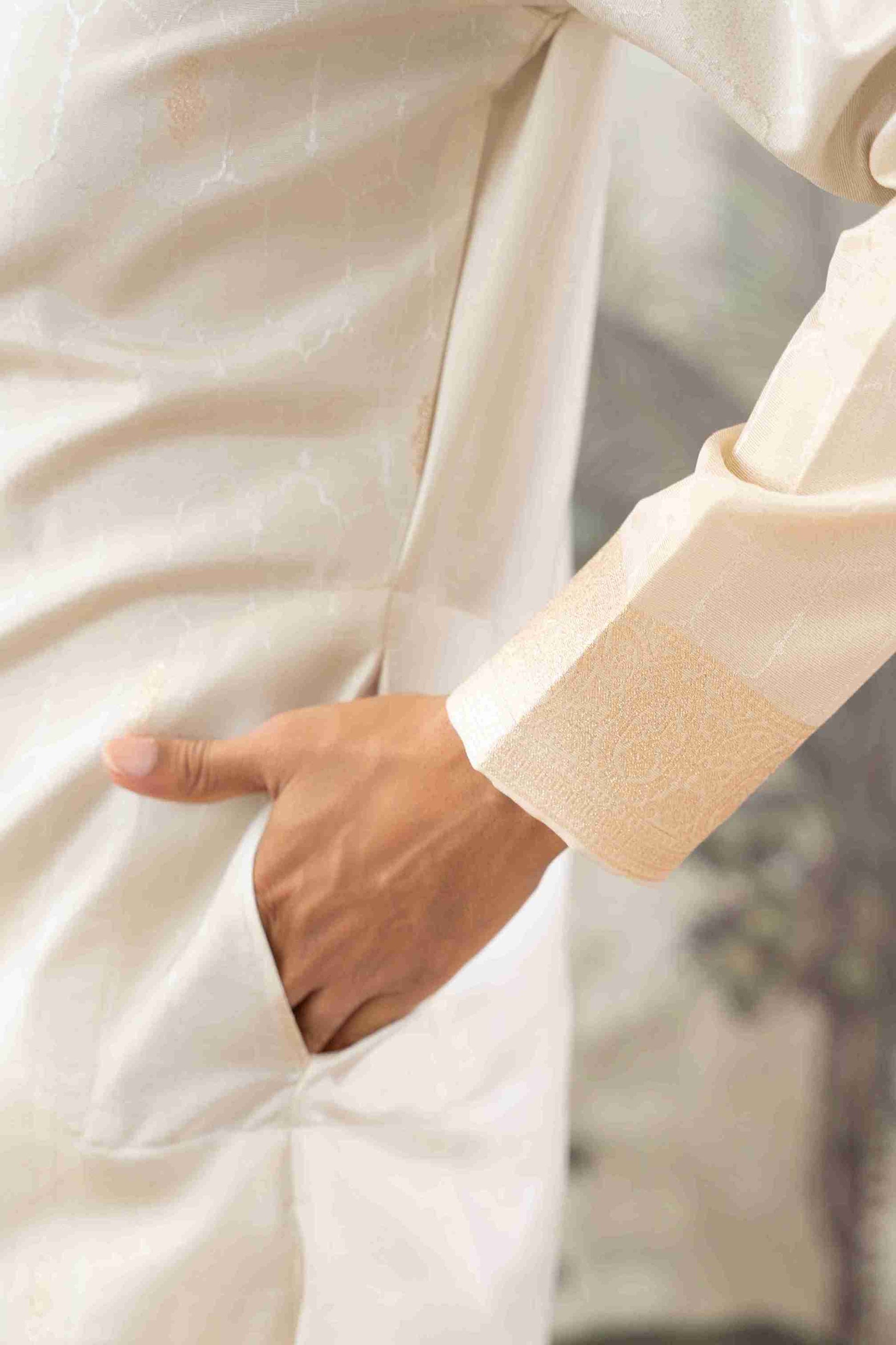 WHITE DEER PATTERN JACQUARD DESIGNER KURTA