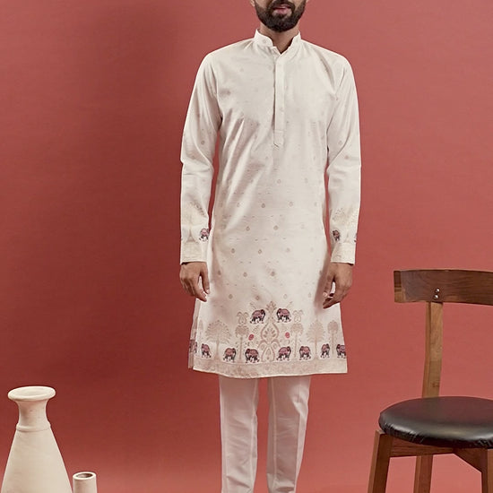 Kurta - Buy WHITE ELEPHANT LAKHNAVI JACQUARD DESIGNER KURTA for Male from Mangal Vastraa Kurta Collection for various occasions.