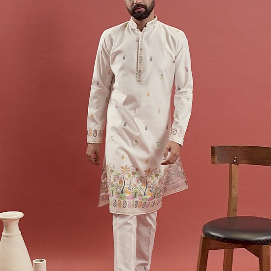Kurta - Buy WHITE VILLAGE PATTERN JACQUARD DESIGNER KURTA for Male from Mangal Vastraa Kurta Collection for various occasions.
