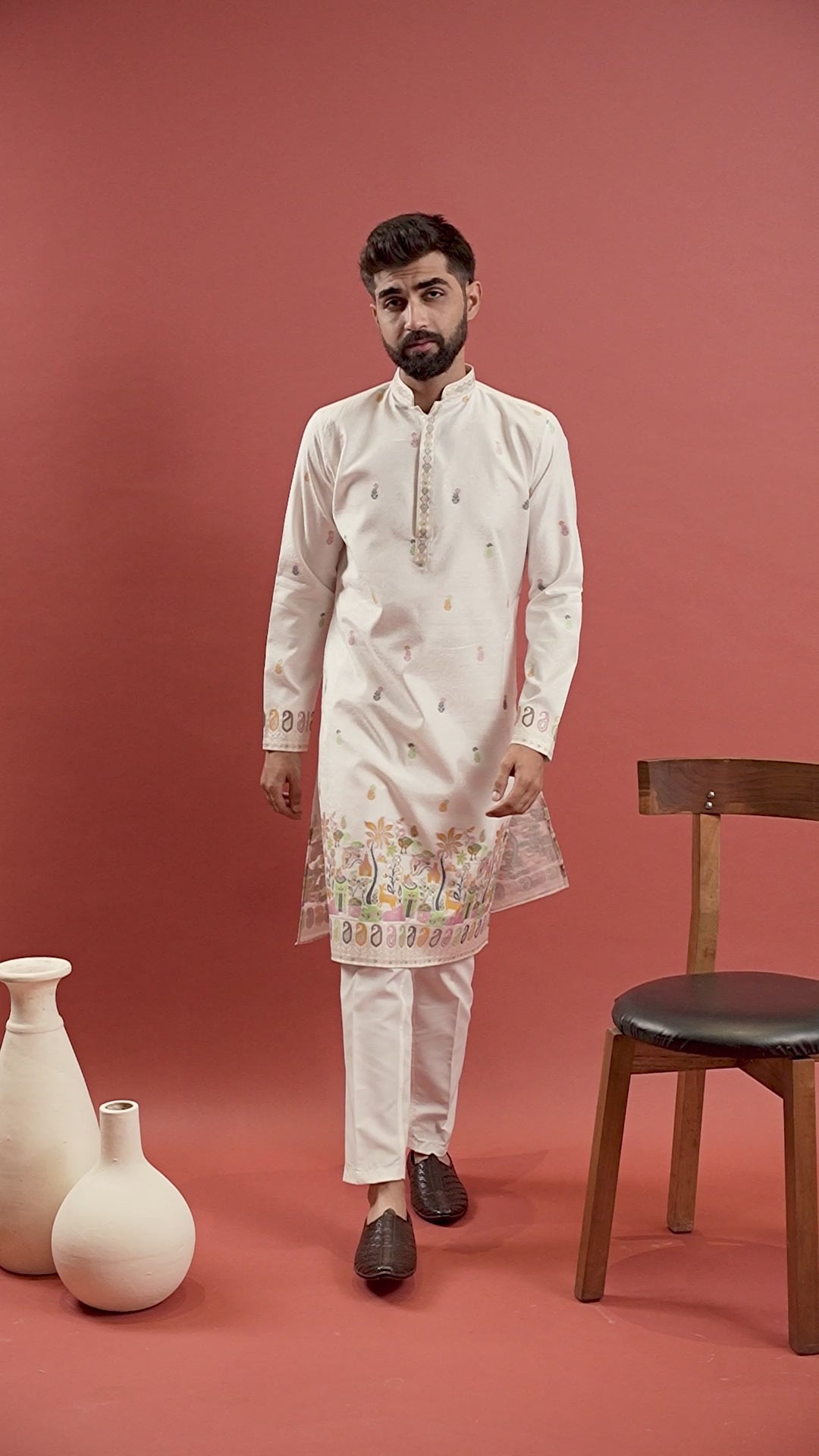 WHITE DUCK PATTERN JACQUARD DESIGNER KURTA